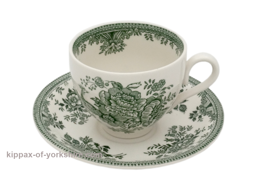 Burleigh Dark Green Asiatic Pheasants tea cup & saucer - ⅓ pint, 187ml